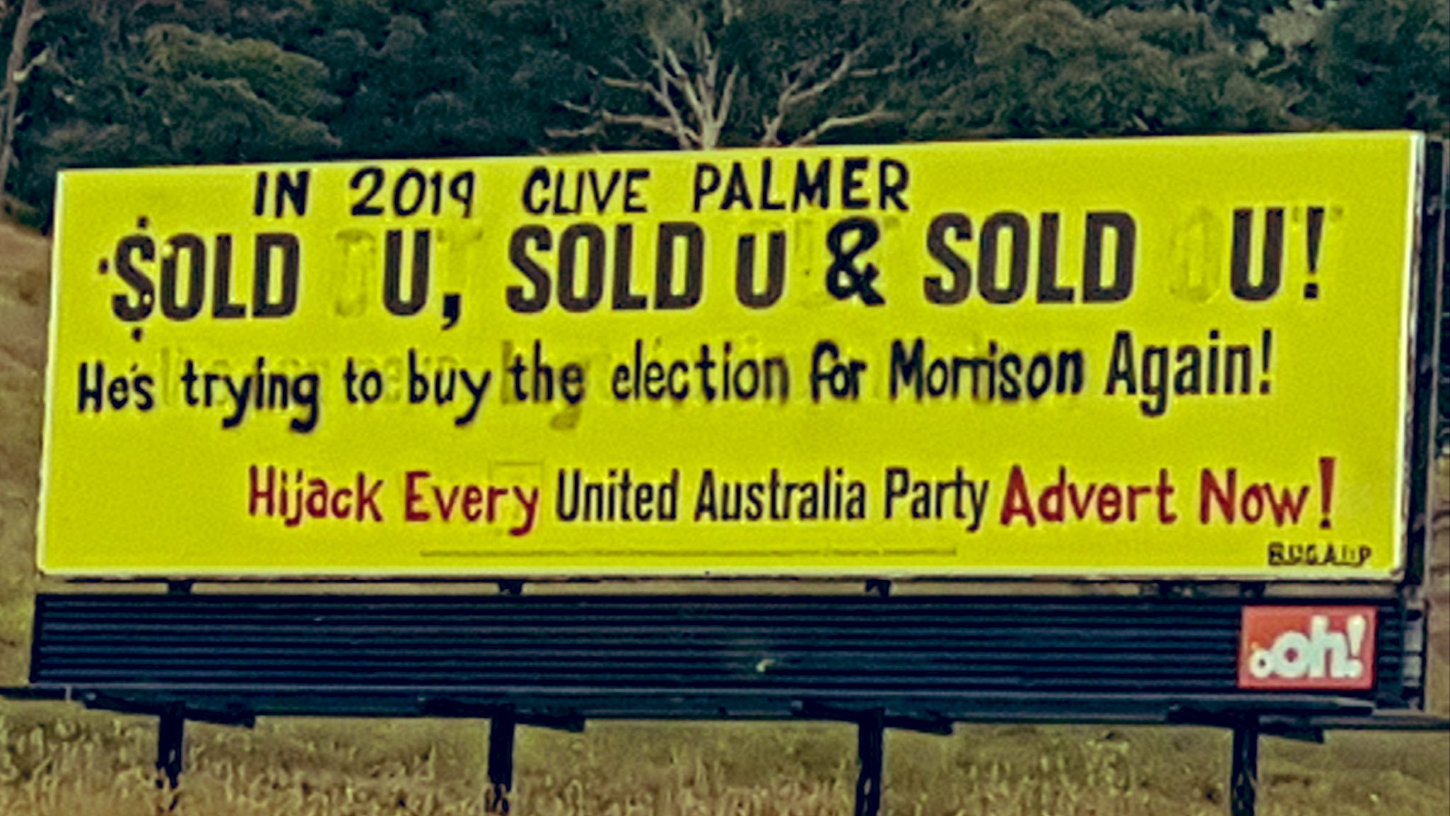 Adjackers On Twitter New Truthful Uap Billboard In Rural Nsw In 2019 Clive Palmer Sold U Sold U Amp Sold U He S Trying To Buy The Election For Morrison Again Hijack Every
